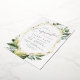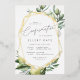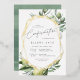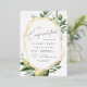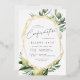 Beautiful nature theme confirmation invitations for spring or summer feature gray lettering framed by a gold foil geometric border and delicate watercolor illustrations of Mediterranean greenery, leaves, olives, and lemons. Personalize with your church ceremony and celebration details. A modern choice in a natural color scheme for boho or nature themed events.