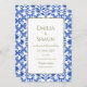 Plain white envelopes are included with paper invitations and will come to fit the invitation size you select. If you don’t need the envelopes, you may choose to not receive them by selecting the dropdown below "Envelopes" and choosing "None." If you’d like to have a design on your envelopes, you can browse all of these available envelopes to find the design that complements your Mediterranean Italian Pattern Blue And White Invitation.