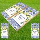 This modern cornhole set boards features an enchanting design that transports players to the sun-soaked landscapes of the Mediterranean. The intricate tile patterns and lively lemons create a visually striking backdrop for the game. Perfect for adding a touch of joy to celebrations such as bridal showers, engagement parties and weddings. This corn hole set is not just a game, it's a lasting keepsake that promises years of laughter and cherished memories. The addition of customisable details makes this set a thoughtful and unique wedding gift that will be treasured for years to come.