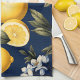 Mediterranean Kitchen Navy Lemons and Blooms Towel