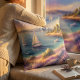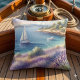 Mediterranean Lavender Coast with Sailboats Throw Pillow