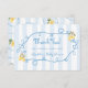 Send a heartfelt note of gratitude with this elegant lemon-themed thank you card! Designed with watercolor lemons, delicate blue bows, and classic blue and white stripes, it perfectly matches your Mediterranean baby shower theme. A sweet and stylish way to thank guests for their love and gifts.