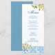 Elevate your reception tablescape with this elegant Mediterranean-inspired wedding menu card. Featuring classic blue ceramic tile details, fresh lemon florals and a refined coastal aesthetic, it is perfect for Amalfi Coast, Italian and destination weddings. The design adds a sophisticated European touch to your wedding table decor while coordinating beautifully with the full stationery suite. Ideal for summer, garden and coastal celebrations, it enhances the romantic Mediterranean atmosphere. Pair it with matching invitations, signage and place settings for a polished wedding look.