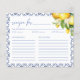Mediterranean Lemon Bridal Shower Recipe Card