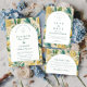 A fresh and elegant design inspired by sun-drenched Mediterranean gardens, featuring hand-painted lemons, soft greenery, and a refined arched layout. The warm neutral background paired with crisp citrus accents creates a light, romantic atmosphere—perfect for a summer celebration. With its balance of natural textures and timeless typography, this design is ideal for couples drawn to Italian-inspired weddings, coastal settings, and effortless, sunlit elegance.
