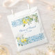 Present your wedding favors in Mediterranean style with this elegant personalized paper bag featuring blue tile patterns and fresh lemon florals. Perfect for welcome bags, guest gifts, bridal shower favors and destination wedding treats, this design brings a bright Amalfi Coast atmosphere to your event. The fresh citrus palette and ceramic-inspired border create a sophisticated Italian coastal aesthetic. Ideal for summer weddings, villa receptions and welcome stations. A beautiful way to elevate your guest experience.