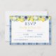 Watercolor bright yellow blue lemon with Mediterranean and Italian tile wedding RSVP response cards.