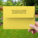Complete your wedding invitations with this Mediterranean Lemon Yellow Wedding Envelope, designed to bring a refined and polished touch to an elegant-themed celebration. Featuring a yellow color that feels timeless and sophisticated, this envelope elevates your stationery from the very first glance. Personalize the To and From address to create a seamless, custom look that saves time while adding a thoughtful, professional finish. Perfect for formal, semi-formal, or upscale wedding, this personalized envelope makes mailing your invitations effortless and ensures a beautiful first impression for your guests.