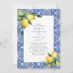 Mediterranean Lemons Blue Tiles Wedding Invitation