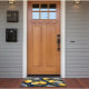 A stunning floor mat adorned with a captivating Italian lemon and white floral pattern set against a deep navy background. This exquisite design evokes the charm of a Mediterranean garden, making it a perfect choice for the kitchen, entrance, patio, or any space where you want to infuse a touch of Mediterranean elegance and vibrancy.