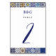 Mediterranean Portuguese Tiles Pattern Wedding Table Number