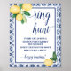 Lemons Blue Mediterranean Tile Ring Hunt Bridal Shower Game Sign. Change number of rings into the template, for additional changes (wording, font color, font style), click on personalize, scroll down and click on link "Edit Using Design Tool". ** Check collection for all matching designs!