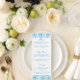 Capture the essence of a sun-kissed Mediterranean celebration with our exquisite wedding menu, designed to transport your guests to a world of timeless beauty and charm. This menu features a stunning arrangement of vibrant lemons, symbolizing love and prosperity, gracefully intertwined with lush green leaves. The pattern used showcases the captivating allure of azul blue tiles, reminiscent of the serene and picturesque landscapes of the Mediterranean coast. At the heart of the design lies a bespoke wedding crest, intricately detailed to represent the union of two souls.