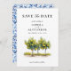 Announce your special day with this elegant Save the Date card! The design features a beautiful watercolor illustration of lemon trees on the front, capturing the charm of the Mediterranean. The back showcases a classic blue Italian pattern. Perfect for a summer or destination wedding!
