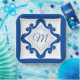 Mediterranean style arabesque shape in blue over white. The Ibiza feel.