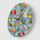 Mediterranean Summer Fruit & Blue White Mosaic Large Clock