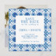 Matching elegant Wedding "Save the Date" Invitation for the "Mediterranean summer modern blue mosaic Wedding Stationary Collection". Text is fully customizable.