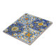 Intricate Mediterranean‑style florals in blue, yellow, green and white with ornate geometric details. A bright, symmetrical tile look inspired by traditional hand‑painted ceramics.