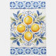 Mediterranean tile and lemons kitchen towels. Beautiful lemon bouquet on a blue and white Mediterranean tile background. You can add text to personalize.