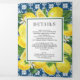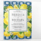 Amaze your guests with this elegant all in one wedding invite featuring beautiful lemons and leaves with modern typography on blue mosaic tile pattern background. Simply add your event details on this easy-to-use template and adorn this card with your favorite photos to make it a one-of-a-kind invitation.