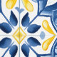 Mediterranean Tile Pattern Floral Blue Yellow Wallpaper