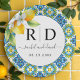 Mediterranean blue and yellow tiles and branch with lemons and flowers wedding paper plate. A sunny, joyful mood is captured in this Mediterranean-inspired wedding design. The striking blue and yellow tile pattern immediately calls to mind the Italian coastline, while the addition of elegant blooming lemon branches with flowers in the upper left corner subtly nods to the "La Dolce Vita" spirit. The plate is both sophisticated and inviting, perfect for a wedding that seeks to reflect the beauty and warmth of an Italian summer. The couple's initials and names are incorporated within a round frame, offering an eye-catching and easily understandable presentation of essential information.
