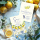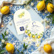 This design is inspired by the luminous and timeless essence of the Mediterranean, combining traditional tile patterns with the vibrant freshness of illustrated lemons. The composition balances geometry and organic elements, resulting in a visually rich, colorful, and sophisticated design. Deep blues, bright whites, and sunny yellow tones evoke coastal landscapes, classic architecture, and a joyful yet elegant atmosphere, ideal for celebrations with a true Mediterranean soul.