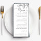 Elevate your reception with this elegant black and white wedding menu card, accented by a delicate olive branch illustration. The minimalist design highlights your meal selections in a clean, stylish layout while adding a touch of Mediterranean charm. Perfect for modern, rustic, or Italian inspired weddings. This menu blends sophistication with simplicity, ensuring your guests enjoy both the dining and design experience.