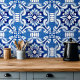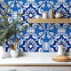 Mediterranian hand painted style blue ceramic tile