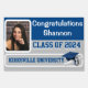 This two-sided yard sign can be fully personalized with the student's photo, name, message, class year, and town & school name. It includes matching cap and diploma artwork, which may also be customized. If you envision a different design, please message MineByDesign and we would be happy to customize it for you!