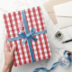 A wrapping paper designed with a dark red and white gingham pattern in medium size.