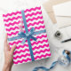A wrapping paper designed with a hot pink and white wavy pattern in medium size. You can change the pink for a different color.