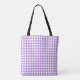 All over print bag with a medium lavender purple and white gingham check pattern. Customizable. Perfect for every day.