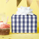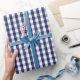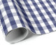 A wrapping paper designed with a navy blue and white gingham pattern in medium size.