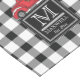 Our original medium-sized buffalo check plaid pattern in black and white with a black and gray bordered, black emblem for your monogram initial, family name and established year with a cute little red truck hauling a decorated Christmas tree in its truck bed. Great for rustic, country and log cabin decor as well as Christmas and winter holiday season.