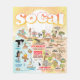 Bright and colorful scene offers a spectacular view of Southern California - wacky characters frolic on the beach and desert of SoCal showcasing Los Angeles, San Diego, Orange County, Santa Barbara, Riverside, Palm Springs, El Centro, Anza Borrego and Joshua Tree parks as well as the border cities of Tijuana, Tecate and Mexicali. This charming scene has it all – a surfer hangs ten while a killer whale leaps out of the water, zoo animals greet the tourists, a muscular beach couple both flex to impress as a T-Rex roars a challenge and a tank moves into position and much more…