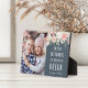 Only the best moms get promoted to Meema! Share sweet Mother's Day greetings with this beautiful photo plaque that features a treasured photo of her grandchild or grandchildren. Personalize with their names at the right, in white lettering on an elegant slate blue background adorned with peach and blush pink watercolor flowers and green foliage.