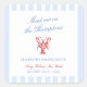 The "Meet Me in the Hamptons" bachelorette suite is a breezy, coastal-inspired collection that captures the effortless charm of an oceanside celebration. Featuring preppy powder blue stripes, elegant script typography, and a bold red lobster illustration, this suite sets the tone for a nautical-chic getaway. Perfect for a seaside soirée, this collection combines East Coast elegance with a playful beach-town vibe—ideal for the bride who brunches, sunbathes, and sips rosé in style.