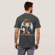 Charcoal grey shirt featuring the video gamer Mega Jrex with his black and white cat, Figaro on the back and Mega Jrex Gaming logo on the front left.
