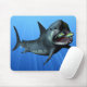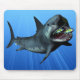 The Megalodon was the most powerful predator in the seas of the Cenozoic Era of Earth's history. Here he devours two swift swimming tuna in one large gulp. This shark was 16 meters or 52 feet long and its teeth remain in fossil beds.