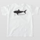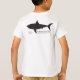Color illustration of the giant shark Megalodon on the front, black and white silhouette on the back.