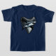This commanding logo captures the essence of the prehistoric Megalodon, framed within the iconic silhouette of a shark tooth. The Megalodon is illustrated with striking detail in a palette of deep blues and contrasting whites, emphasizing its formidable size and power. Its jaws are open in a show of might, revealing an impressive array of teeth. The silhouette of the tooth provides a bold outline that enhances the overall impact of the design, symbolizing both the ancient strength and the enduring legacy of this legendary creature. The use of a deep black backdrop allows the metallic accents on the Megalodon's body to stand out, creating a sleek and contemporary emblem that conveys dominance, resilience, and a commanding presence.