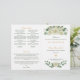 This folded Catholic wedding mass ceremony program features an elegant, neutral color palette of white, gold and green. The front cover includes beautiful bouquets of watercolor flowers and greenery accented by a Christian cross in faux gold glitter. Your ceremony details are written in a stylish calligraphy script and a classic serif font. Personalize it using the easily editable text fields. There is plenty of room to include all your Catholic wedding mass details, such as the names of the people in your Wedding Party, the Liturgy of the Word, the Rite of Marriage, the Liturgy of the Eucharist and the Concluding Rites.