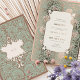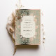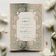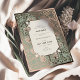 This wedding invitation is a beautiful fusion of Islamic art and Art Nouveau style, detailed with gold foil accents on a sage green background. The design incorporates traditional Islamic calligraphy at the top, adding a meaningful and cultural touch. Below the calligraphy, the invitation details are elegantly presented in a mix of classic and script typefaces. The floral and scrollwork patterns that adorn the borders are reminiscent of both Art Nouveau and Islamic artistic traditions, creating a sophisticated and timeless look. This invitation is perfect for couples who wish to honor their heritage while also celebrating with timeless style.