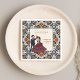 Mehndi and sangeet Indian wedding favors personalized printed napkins template, vintage tiles pattern modern arch cute dancing couple caricature lanterns decor Mehndi and sangeet wedding mehndi personalized table decor