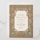 This wedding invitation is a beautiful fusion of Islamic art and Art Nouveau style, detailed with gold foil accents on a sage green background. The design incorporates traditional Islamic calligraphy at the top, adding a meaningful and cultural touch. Below the calligraphy, the invitation details are elegantly presented in a mix of classic and script typefaces. The floral and scrollwork patterns that adorn the borders are reminiscent of both Art Nouveau and Islamic artistic traditions, creating a sophisticated and timeless look. This invitation is perfect for couples who wish to honor their heritage while also celebrating with timeless style.