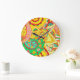 Mehndi Doodle: Colorful Ethnic Texture. Large Clock