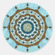This copper and blue mandala was inspired by Indian mehndi and costumes from Japanese anime. It features layers with lotus petals, leaves, paisley and an ornamental wheel around it all.