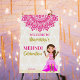 Mehndi haldi two in one value for money welcome signs pink mandala cute Indian girl cartoon Indian wedding mehndi welcome sign, on reverse haldi pithi dressed in yellow Indian bride with yellow flowers.