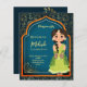 Budget Mehndi / Sangeet Indian Arabian paisley patterns design teal green color invitation.